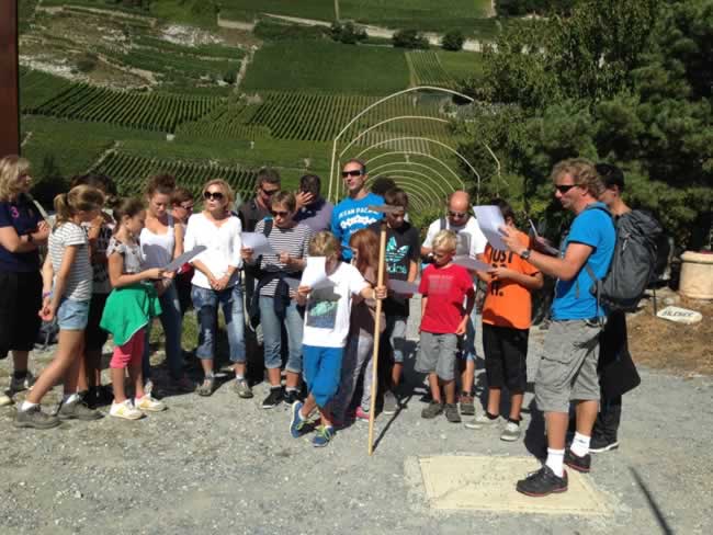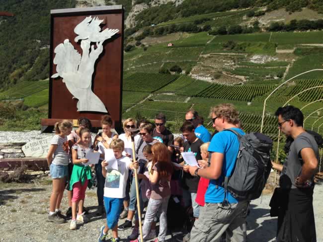 Ensemble pour Aider et la Fondation Enfants Papillons : une amitié « engagée » qui a commencé un peu plus d’un an, avec comme point culminant la soirée genevoise organisée le 16 novembre 2013 par les huit Amis pour le soutien de la recherche de l’épidermolyse bulleuse. Et comme l’amitié n’est pas faite que pour un soir et qu’on a envie de continuer encore un bout de parcours ensemble, « Ensemble pour Aider » s’est retrouvé à la Vigne à Farinet pour s’occuper des 3 ceps et en particulier du cep papillon puis autour d’une raclette préparée par les Amis Papillons , tout particulièrement la joyeuse équipe de Saviésans. Avec bien sûr la merveilleuse mise en scène Farinet menée par l’inimitable Pascal Thurre et l’incontournable coup de fusil en apothéose !