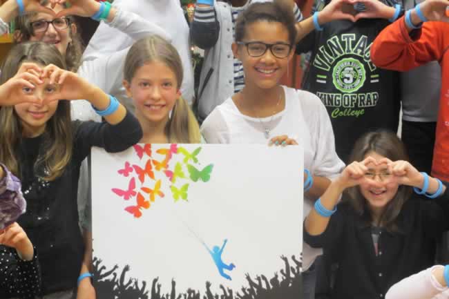 La cause des Enfants Papillons a en effet également touché Edwige, 11 ans, "jeune adolescente" et fille de l’un des organisateurs. Elle s’est faite la plus jeune conférencière de la Fondation en réalisant une présentation à ses camarades de classe à Genthod la veille des vacances de Noël, une présentation remarquable tant par sa sensibilité et que sa précision. Les mains ouvertes en cœur, les bracelets "Just Remember", le message a passé !