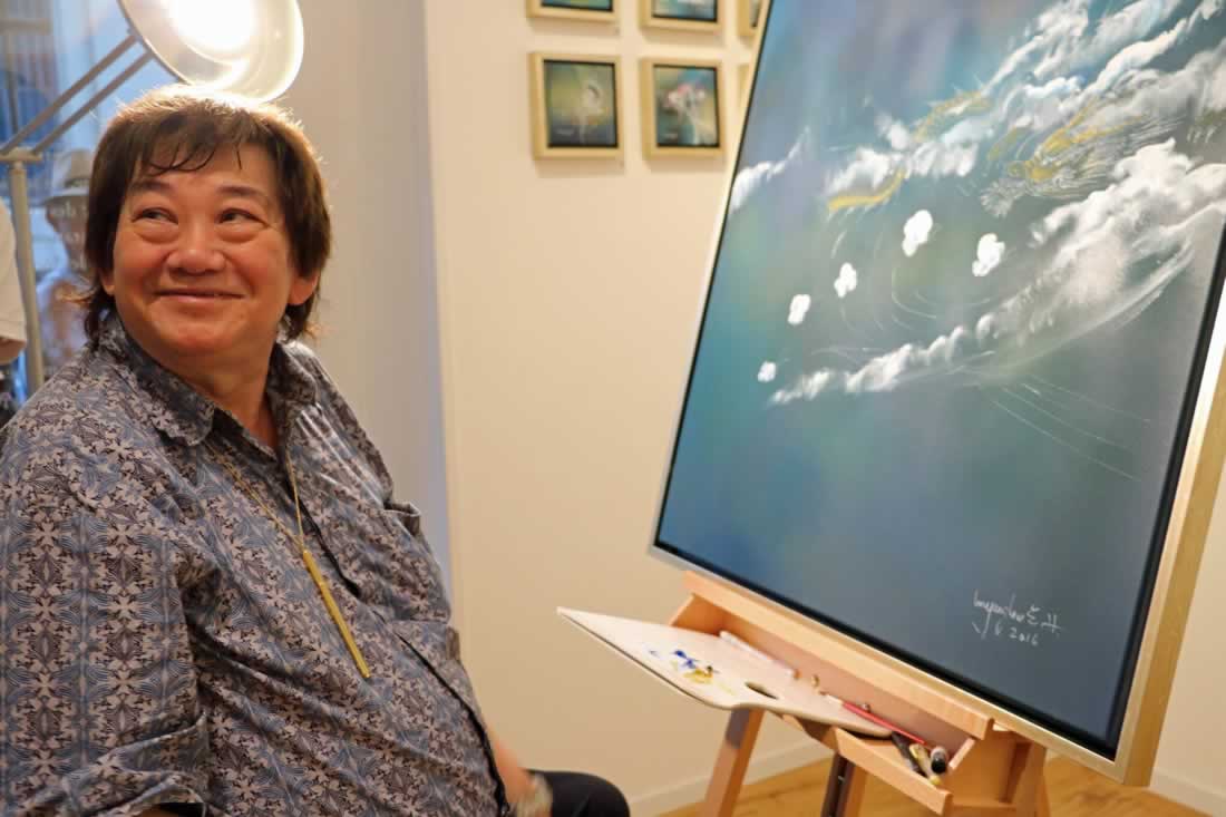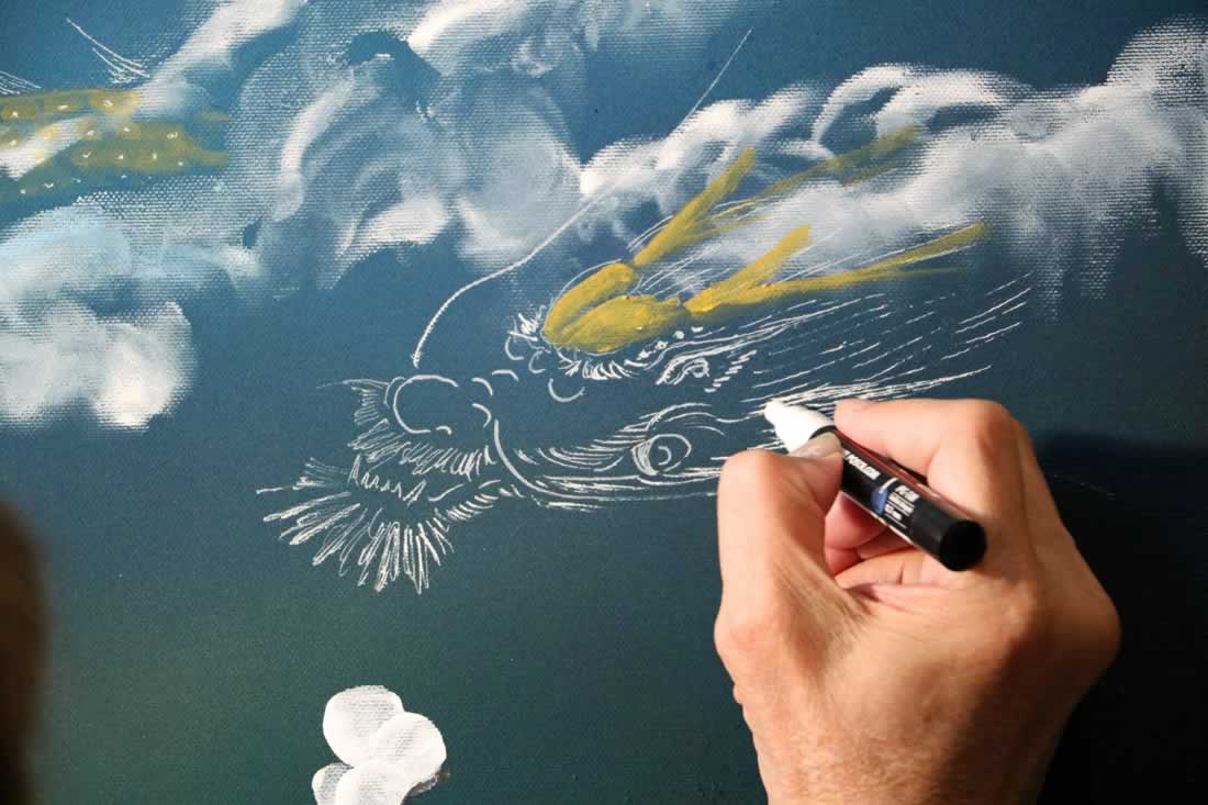 Inn-Yang Low, le célèbre peintre du dragon chinois, célèbre par ses performances monumentales, a réalisé le 20 août dernier, une œuvre magnifique, offerte à la Fondation Enfants Papillons, à la G&J’s Art Gallery à Montreux.
