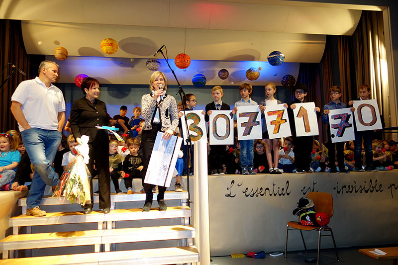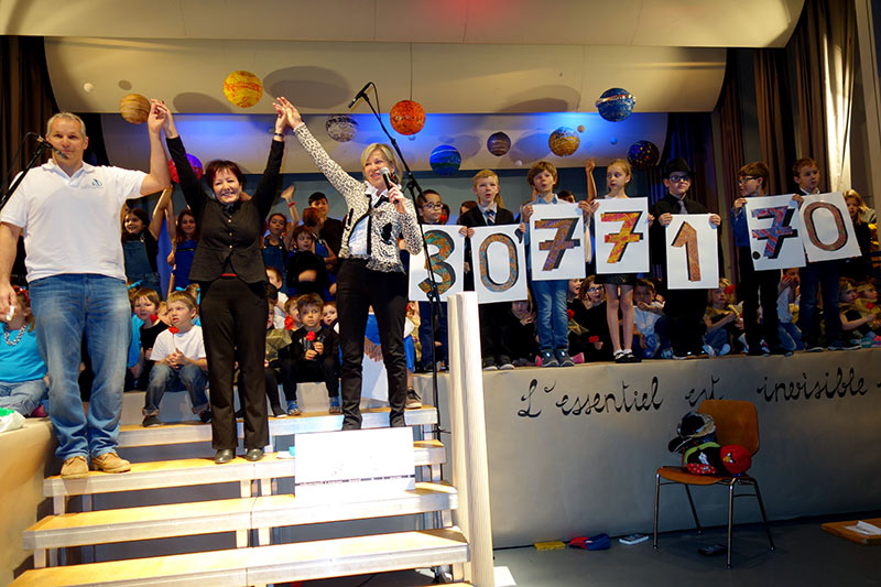 On attendait impatiemment de connaître le montant total récolté, mais l’attention a été rapidement captée par la merveilleuse mise en scène du Petit Prince de St-Exupéry par les enfants de Venthône. Musique, danses, chants, costumes et décors nous ont émerveillés et permis de redécouvrir autrement ce texte si riche en messages essentiels !