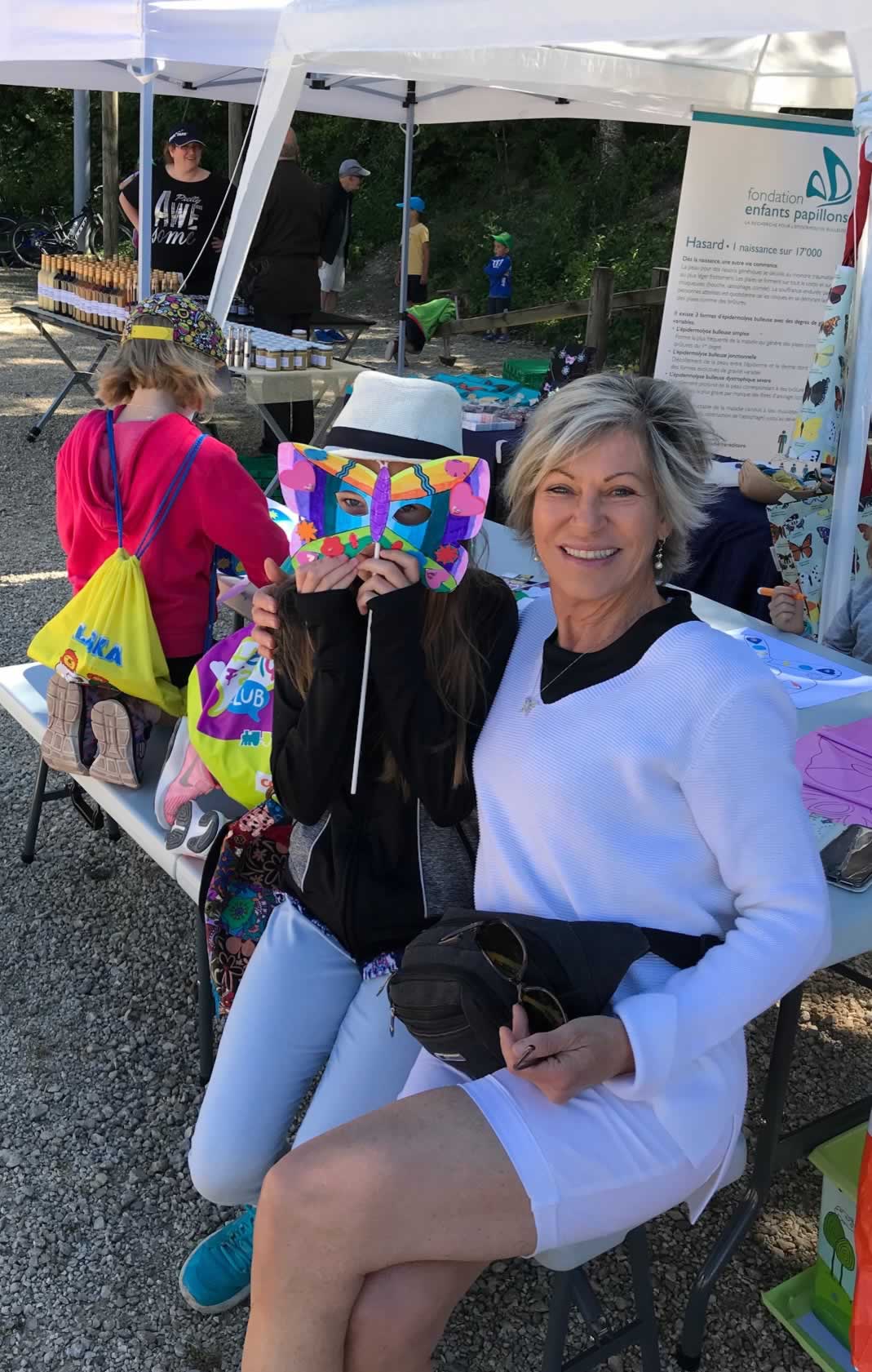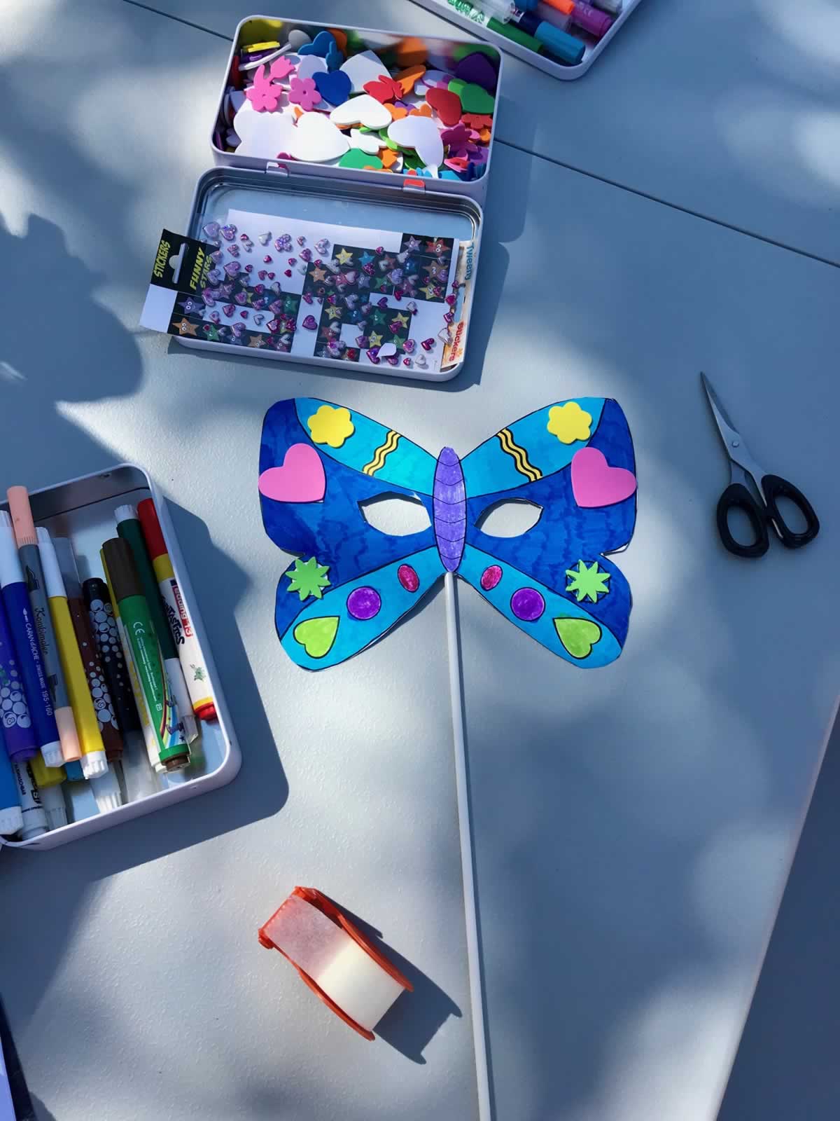 Les enfants sont venus nombreux à notre table de bricolage et sont repartis heureux avec leur masque papillon.