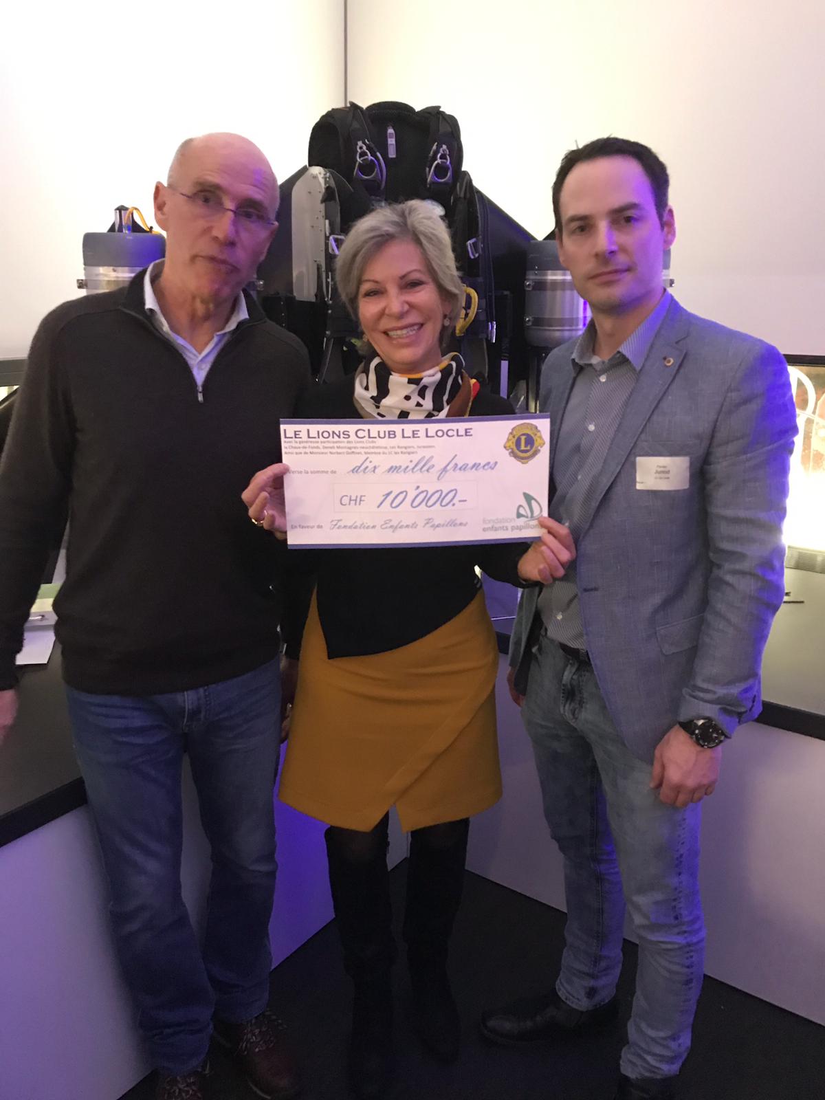 Tous les Lions et Lionnes des Montagnes neuchâteloises et jurassiennes étaient invités ; tous ont participé avec une incroyable générosité au soutien de la Fondation Enfants Papillons en lui offrant un chèque de 10 000.-.