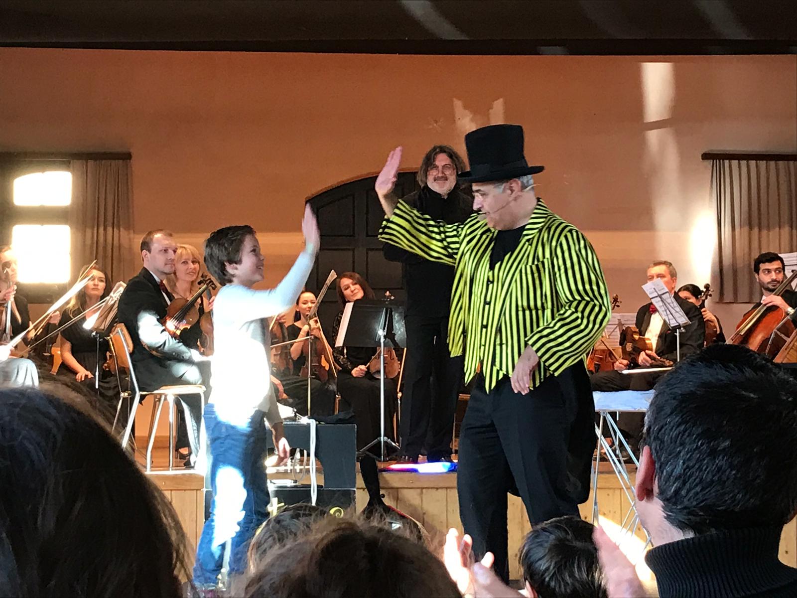 Les organisateurs du traditionnel concert pour les enfants l’ont dédié à la Fondation Enfants Papillons cette année. Nous nous sommes donc retrouvés à la Grande salle d’Ollon le 27 février 2019 en fin d’après-midi avec l’Orchestre de chambre de Kazan pour l’interprétation de « La Primavera » du Tatarstan et avec la compagnie joyeuse et très appréciée de Titof le magicien.