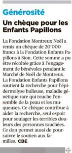 La Fondation Montreux Noël a remis un chèque de 20 000 à la Fondation Enfants Papillons