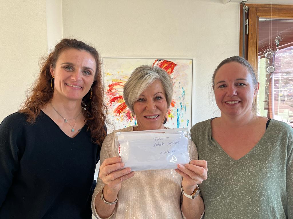 Malgré une bonne dose de frustration Vinciane et Amandine ont décidé d’abandonner ce défi néanmoins bénéfique pour la Fondation Enfants Papillons : battantes, énergiques et entreprenantes, elles nous ont remis l’incroyable somme de CHF 5 336.40 le 11 février 2023, en présence du Comité et d’Amis Papillons.