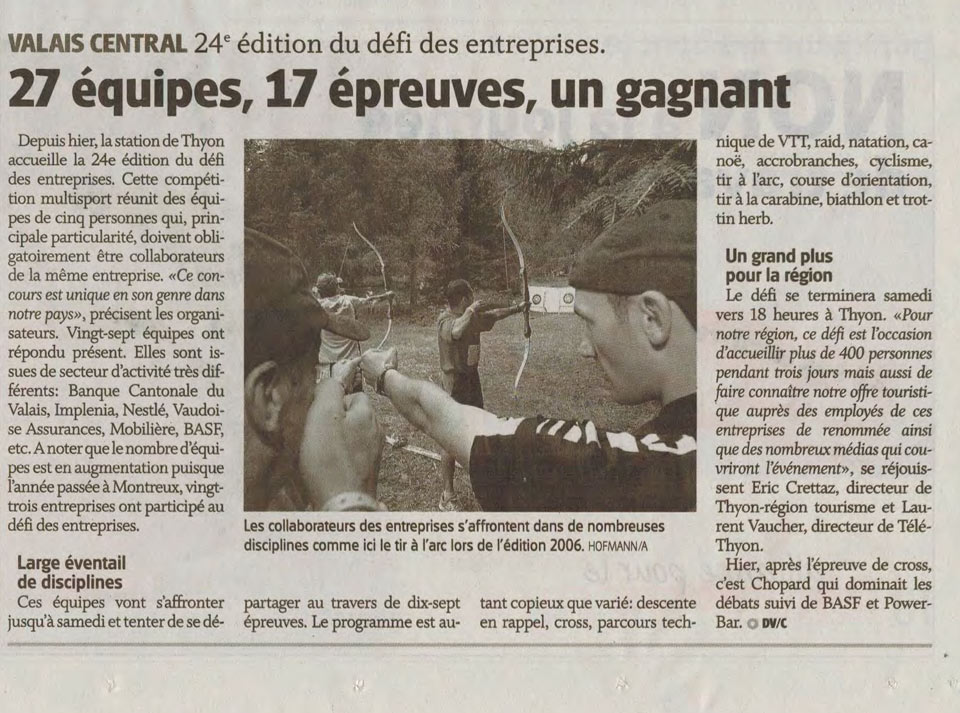 - Vincent Fauchère, préparateur physique HCS, Coach personnel Zurich Ironman 2013, à la course Dixence-Thyon, au crawl 2 km, au vélo course Sion-Mâche , au VTT, avec l’exploit incroyable d’assumer seul les 4 relais de l’épreuve