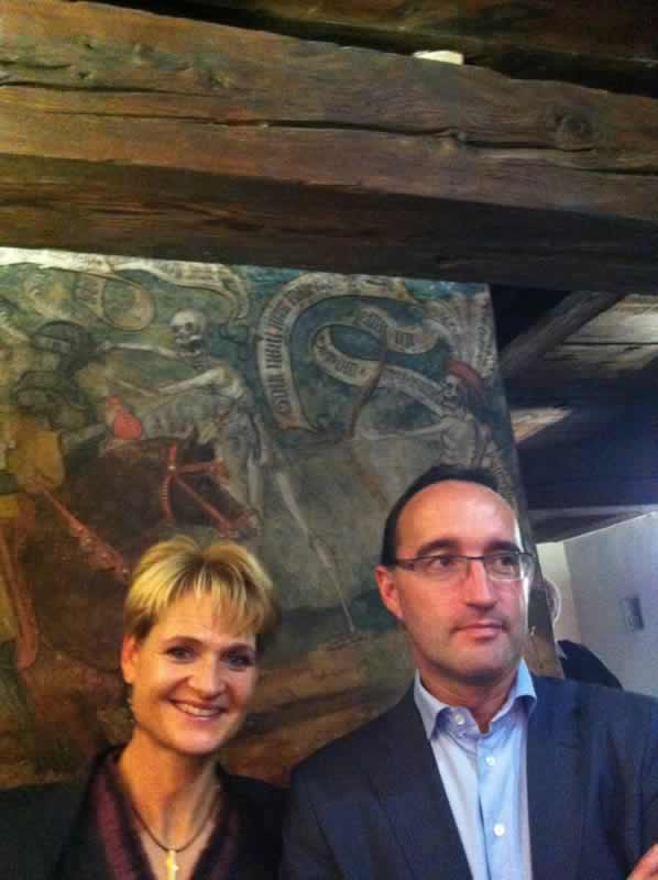 Loèche nous a grand ouvert toutes ses portes, en témoignage de son soutien aux enfants papillons et pour notre plaisir. Notre guide et historien, Monsieur Roger Matthieu, nous a fait découvrir cette bourgade qui recèle de trésors : l’Eglise Saint-Etienne et son ossuaire impressionnant, la Salle de marbre du Château de Werra-Zen Ruffinen, grâce à l’amabilité de Madame Claudia Zen Ruffinen, le Château restauré par Botta et son étonnante coupole.