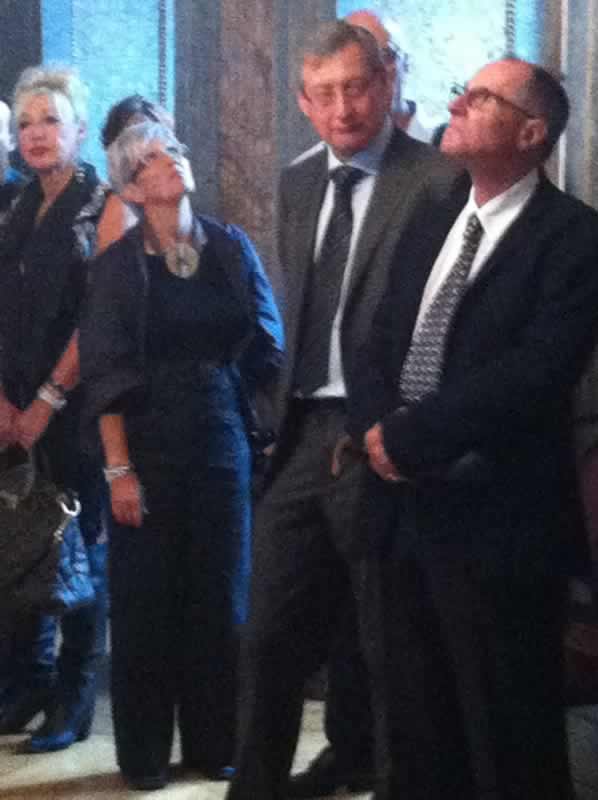 Nous avons ensuite pu découvrir l’Hôtel de ville pour les festivités de la soirée : une salle comble, l’honneur d’accueillir la Présidente du Grand Conseil Madame Marcelle Monnet-Terrettaz, le Président de Sion Monsieur Marcel Maurer accompagné d’ une importante délégation sédunoise, Yves Rossy Jetman, la présidente de Soroptimist international 2012-2014 Madame Rita Vuichard, Monsieur le Professeur Yann Barrandon, Madame le Docteur Kristin Kernland, responsable de l’unité de prise en charge multidisciplinaire de l’épidermolyse bulleuse à l’Inselspital de Berne, Michèle et Imanol , deux jeunes adultes « papillons » et leurs proches, ainsi que tous les amis, nouveaux ou fidèles, de la fondation .